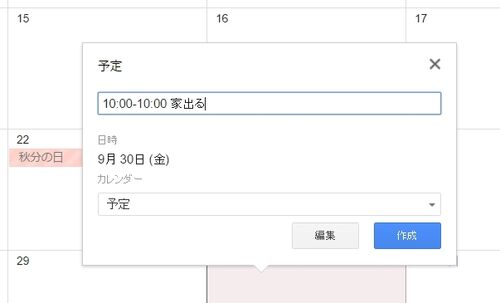 まぁみなさんご存知かもとは思いますが、まとめます。 楽して登録したい Googleカレンダーにリマインダーのごとく細かく登録している方、結構いると思います。たとえば、10:00 家出る22:53 終電 やまびこ60号とかですね。 登録が多くなってくると、なるべく…